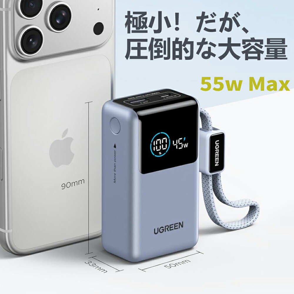 商品ページ内のクーポンで表記価格になります。90×50×33mmコンパクトサイズながら10000mAh、PD45Wのパワフルモバイルバッテリー。ストラップ型の充電コードでも最大45WのPD出力に対応。ディスプレイ搭載で残量、充電中のリアルタイム合計出力表示。USB-Cケーブル+USB-Cポート+USB-Aポートの計3出力対応。24ヶ月保証。クーポンが使用できない場合は終了していますのでご了承下さい。