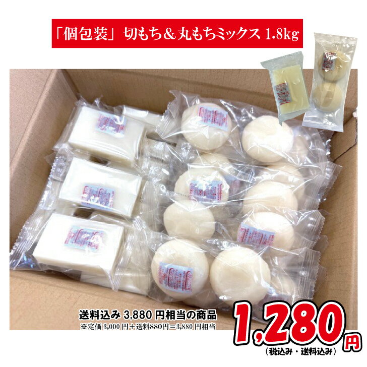 訳ありお試し特価。本日いちばの日でエントリーで楽天ポイント最大4倍です。小さくて便利な個包装もち、切餅&丸餅どっさり1.8kg。鏡餅にも使用している丸餅と切餅を詰め合わせたセットです。通常商品と同じ正規のお餅です。お餅には「新潟県産こがねもち米100%」を使用しており、コシのある伸びとなめらかな口当たりが特徴です。こぶりなサイズなので、焼き餅やお雑煮、おやつなど、さまざまな食べ方で美味しく楽しめます。個包装になっているため、食べたい分だけ取り出せて保存にも便利です。