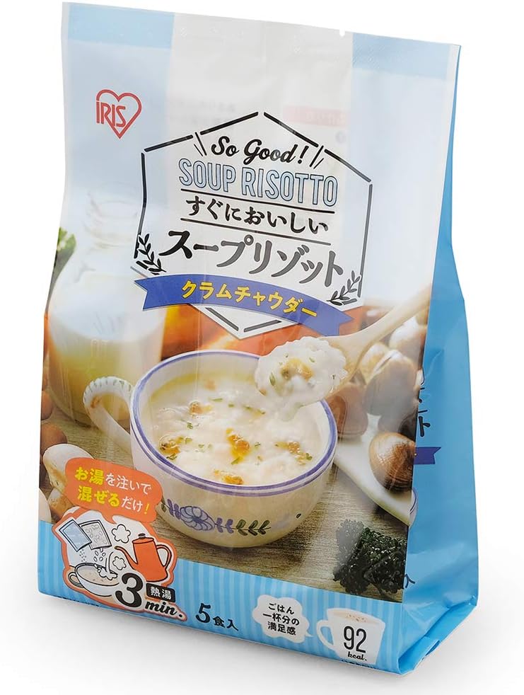 タイムセール特価!1食あたり59円。お湯を注ぐだけで簡単に食べられるスープタイプのリゾット。あさりのエキスや野菜の旨みがギュッとつまったクラムチャウダー。Amazonプライム会員又は2,000円以上の注文で送料無料。それ以外は送料400円です。