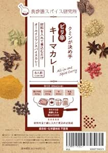 タイムセール特価!ただのカレー粉・カレールーではなく塩や乾燥玉ねぎも入っていて、鍋で煮込むだけでカレールーより簡単に美味しいスパイスカレーが作れる無添加カレースパイスです。辛口(某カレー店の4辛くらい)。ピリ辛キーマカレーは、胡椒とクミンを効かせたパンチのあるスパイスカレーです。シリーズの中でもスパイスのバランスが良くアレンジしやすいカレーです。シビ辛薬膳カレーは、アニスと花椒を加えたシビ辛い一品。リピーターがとても多い商品です。Amazonプライム会員又は2,000円以上の注文で送料無料。それ以外は送料400円です。