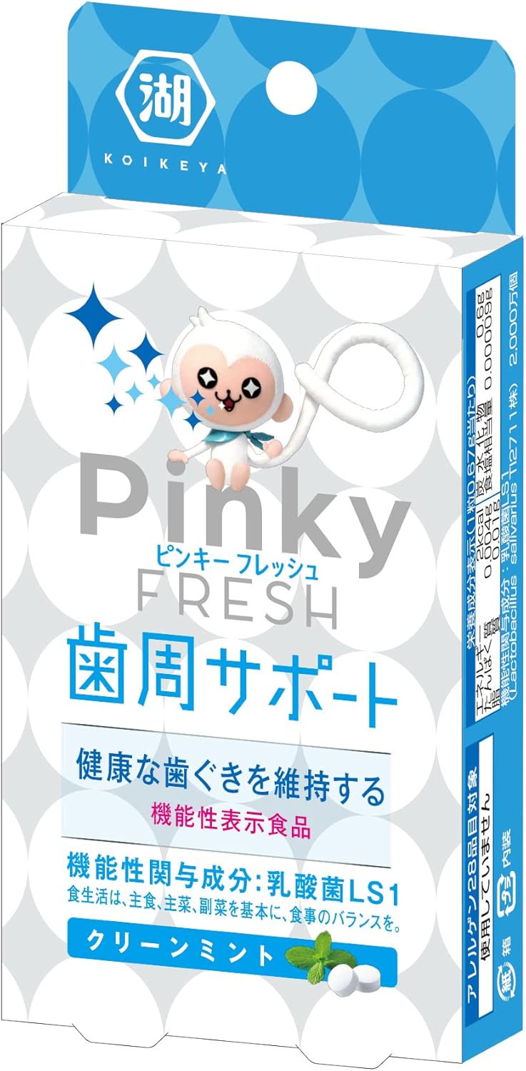 50%OFF!乳酸菌LS1配合のPinky FRESHは、健康な歯ぐきを維持する機能がある歯周サポートタブレットです。1日1粒ゆっくり口で溶かして、なめて食べてください。ほんのり弱ミントで歯みがき後にも食べやすいクリーンミントです。機能性表示食品。乳酸菌LS1(Lactobacillus salivarius TI2711株)が含まれます。乳酸菌LS1は、健康な歯ぐきを維持する機能があります。歯周組織が健康が気になる健常な方に適しています。Amazonプライム会員又は2,000円以上の注文で送料無料。それ以外は送料400円です。