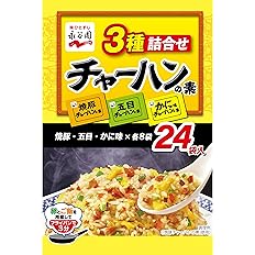 タイムセール特価!定期おトク便なら更に割引になります。定期おトク便はいつでも解除できます。人気のチャーハンの素3種「かに味」「焼豚」「五目」を詰め合わせたアソート商品です。卵とご飯を用意してフライパンで炒めるだけで、簡単にパラッとしたおいしいチャーハンができあがります。Amazonプライム会員又は3,500円以上の注文で送料無料。Amazonプライム会員ではない方で3,500円に満たない場合は、本州・四国は送料460円、北海道・九州・沖縄・離島は送料500円です。表記価格は掲載時の価格です。時間差で売り切れや値上がりしている場合がありますので、その際はご了承下さい。