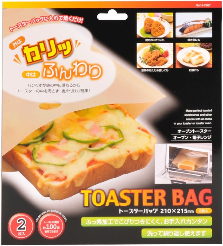 タイムセール特価!このトースターバックにパンやおにぎり、唐揚げなどを入れて、トースターで温めると、外はカリッ、中はふんわりに仕上がります。パンを焼いた際は、パン屑が袋の中に落ちるから、トースターの中を汚さず、後片付けが簡単。トースターの場合、約100回、洗って繰り返し使えます。オーブントースター、オーブン、電子レンジ、グリル、フライパンに使用可能。2枚セットです。Amazonプライム会員又は2,000円以上の注文で送料無料。それ以外は送料400円です。