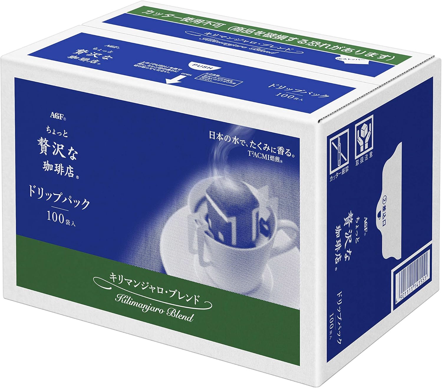 本日最終日です。前回掲載時より値下がりしました。商品ページ内のクーポンで表記価格になります。訳あり(賞味期限2022年6月30日)特価です。香り深まる、青のブラック。厳選した豆の特徴に合わせて丁寧に焙煎した豊かなコクと深く濃い香り。珈琲店のマスターがハンドドリップで淹れたような贅を尽くした奥深い味わいと香りが楽しめるドリップコーヒーです。タンザニアキリマンジャロ豆をブレンドして、深煎りに仕上げた爽やかな味わい。オフィスや沢山消費される方に最適なお徳用サイズです。1杯1杯がいつも新鮮な個包装タイプ。コーヒー豆の焙煎から充填まで国内の工場で一貫生産し、繊細な日本人の味覚に合わせて開発。誰にも邪魔をされず、ゆっくりしたい。1日の中で訪れる、ささやかでありながら、ちょっと贅沢な時間。そんな時間にふさわしいコーヒーです。クーポンが消えている場合は終了していますのでご了承ください。