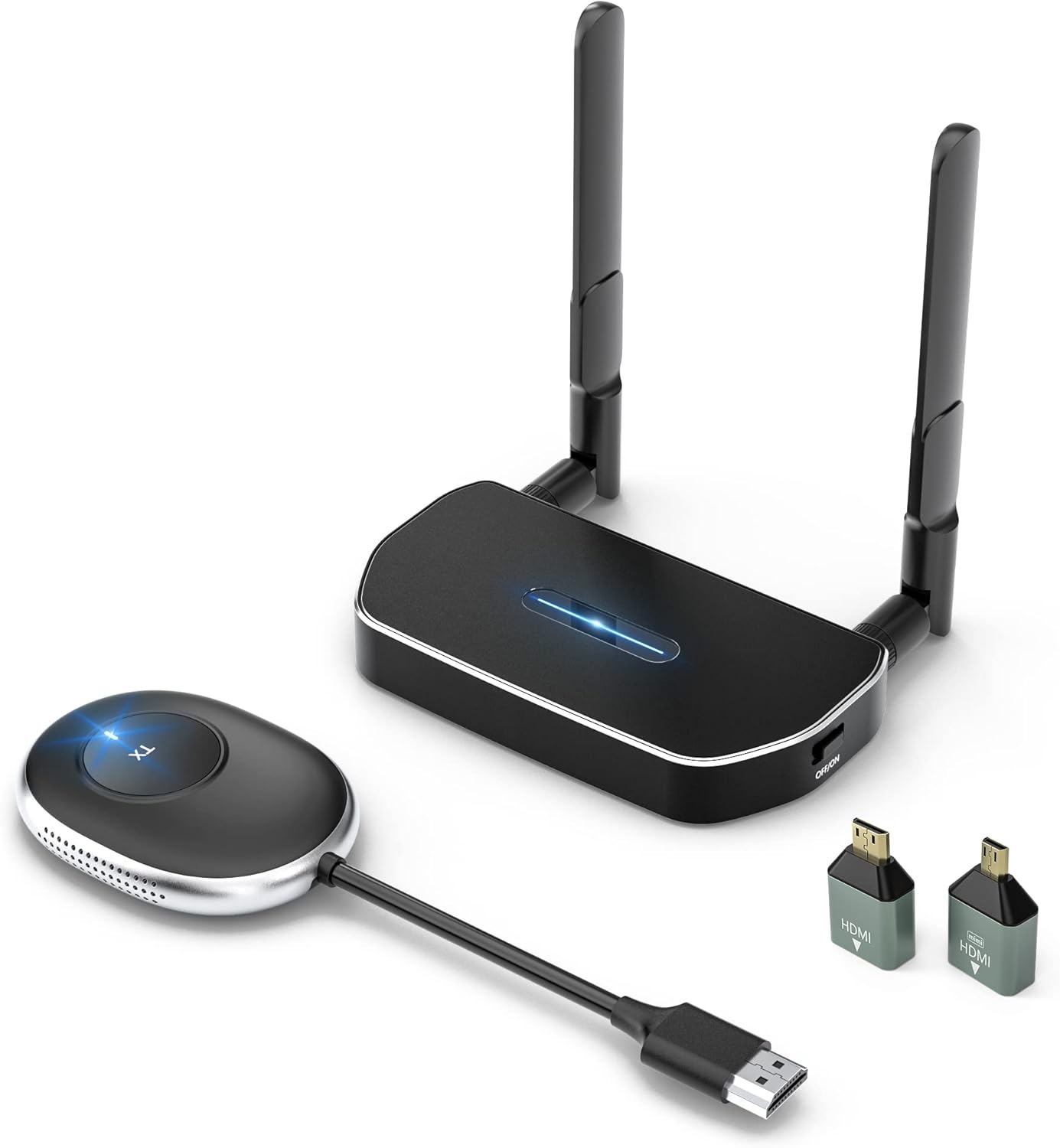 クーポンコード:NCP43S5Iで表記価格になります。パソコンやタブレットから、プロジェクターやディスプレイへ簡単にワイヤレス投影が⾏えるプレゼンテーション⽤機器です。非圧縮伝送により高画質・高音質を保ったまま映像・音声データをワイヤレスで転送することができます。3D映像やフルハイビジョン高画質映像に対応しています。受信機・送信機はペアリング設定済みなので、接続するだけで 面倒なドライバ設定などは必要ありません。4K(3840×160)とフルHD (1920×1080)のサポートしており、高解像度で鮮やかな色彩なコンテンツを楽しむことができます。日本語インターフェイスでの操作に対応しており、日本語の説明書も付属しております。電波干渉防止機能、強力なデュアルアンテナ信号の5G帯無線伝送。送信機をパソコンなどの機器に、受信機をテレビやプロジェクターに接続すれば、ワイヤレスで映像・音楽を出力できます。送信機は最大8台も増設できます。