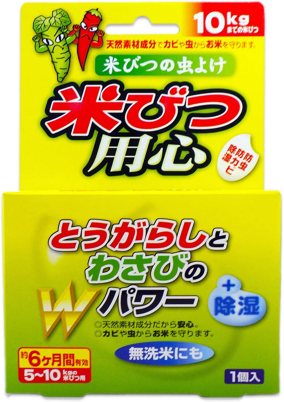 商品ページ内のクーポンで表記価格になります。とうがらしとわさびのWパワーでお米につく虫(コクゾウムシ、ノシネマダラメイガ)をよせつけず、天然鉱物の吸着作用により余分な湿気をとりのぞきます。5-10kgの米びつ用。約6ヶ月間有効です。クーポンが消えている場合は終了していますのでご了承ください。Amazonプライム会員又は2,000円以上の注文で送料無料。それ以外は送料400円です。