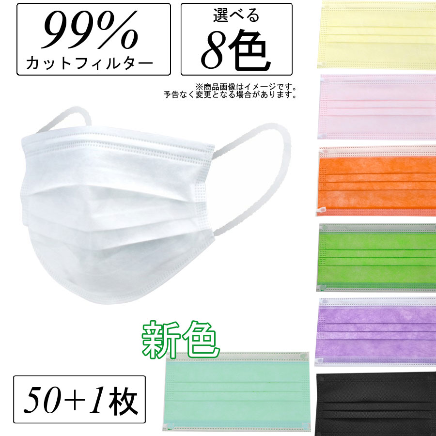 • 【楽天スーパーSALE特価】【80%OFF】【本日5倍】【270円】 男女兼用 レギュラーサイズ カラー 濾過率99% 3層 不織布 サージカルマスク 51枚 【送料無料】