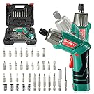 商品ページ内のクーポンで表記価格になります。トルク6Nm、6.35mm(1/4 “)マグネット式チャック、2000mAhリチウムイオン電池搭載。時計回り/反時計回りを切り替えるスイッチがあります。前部に高輝度LED照明ライト付き。滑りにくくしっかりと握れるソフトグリップ仕様。25mmCRVドライバービット10本(トルクス4本(TH10/15/20/25)、スクエア3本(S1/2/3)、六角3本(H3/4/5))。 50mmCRVドライバービット9本(プラス3本(PH1/2/3)、ポジドライブ3本(PZ1/2/3)、マイナス3本(SL3/4/5))。マグネット付きビット延長アダプター1本付属。