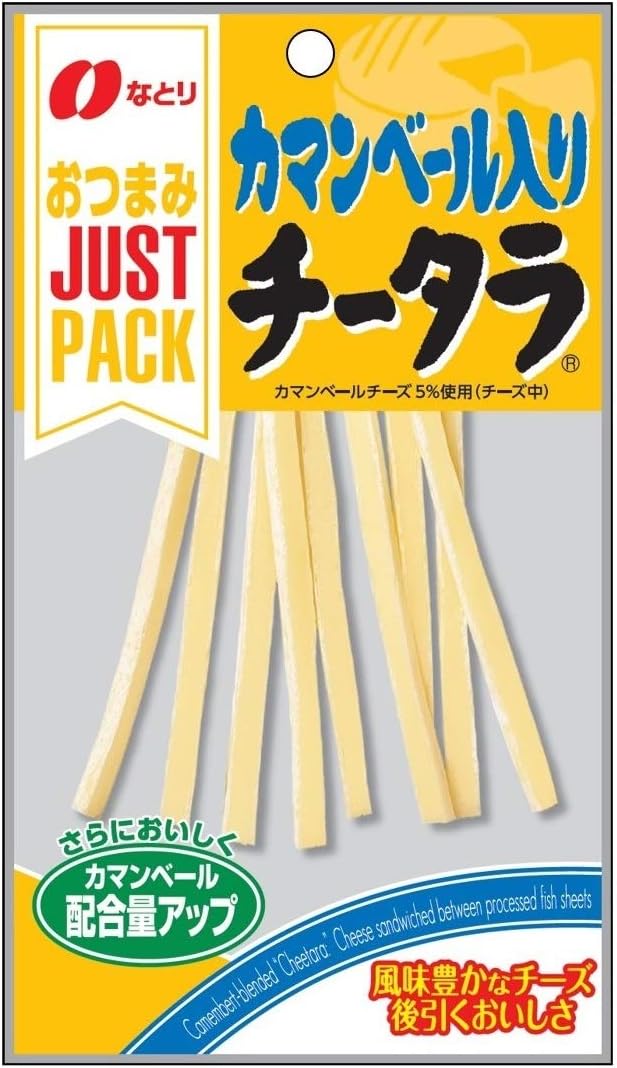 アウトレット特価!1袋あたり92円。食べきりサイズの個食タイプおつまみジャストパックシリーズです。コクのあるカマンベールチーズを5%(チーズ中)使用した、まろやかな味わいの「チータラ」です。風味豊かなチーズが後引く美味しさで、ビールやチューハイ・ハイボールなどのお酒はもちろん、おやつとしてもおいしく食べられます。Amazonプライム会員又は2,000円以上の注文で送料無料。それ以外は送料400円です。