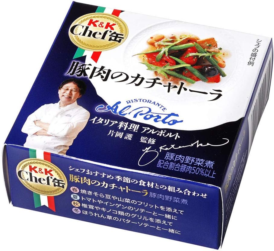 67%OFF!Chef缶とは、トップシェフの一皿を、家庭で楽しめる缶詰です。一流レストランのメニューの味わい。カチャトーラとはイタリア語で”猟師風の”という意味です。鶏肉やキジ肉をつかう定番の家庭料理。アルポルトでは美味しい豚肉と野菜をつかって、本場イタリアの味をだしています。Amazonプライム会員又は2,000円以上の注文で送料無料。それ以外は送料400円です。