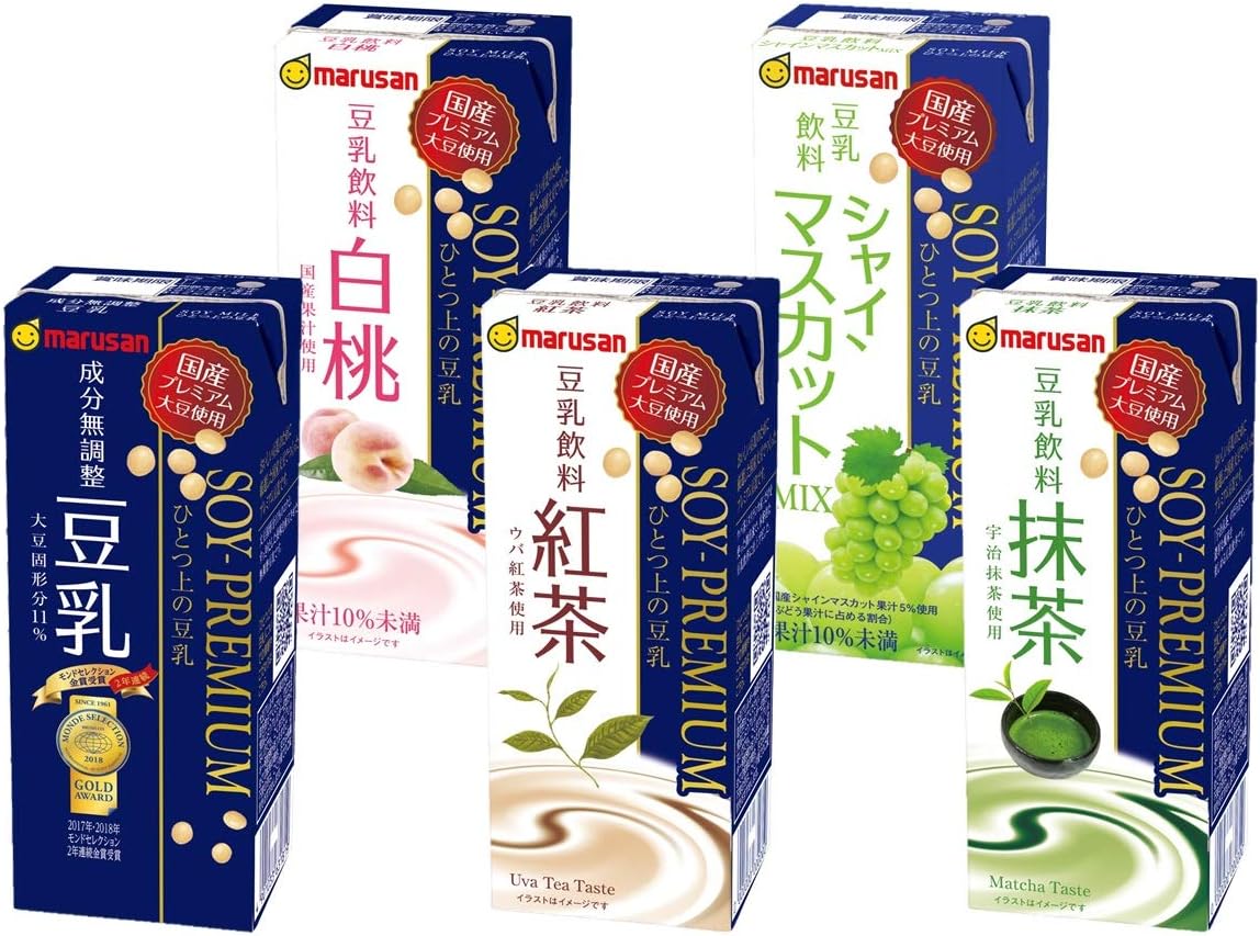 割引クーポン復活しました。商品ページ内のクーポンで表記価格になります。1本あたり74円。無調整6本、白桃3本、紅茶3本、抹茶3本、シャインマスカット3本のWEB販売限定商品。おいしい豆乳のために選んだ国産プレミアム大豆で、おいしさと満足感を体感できる豆乳。豆乳のコクと旨みの中に、本格的な大豆の味を味わえます。クーポンが消えている場合は終了していますのでご了承ください。Amazonプライム会員又は2,000円以上の注文で送料無料。それ以外は送料400円です。