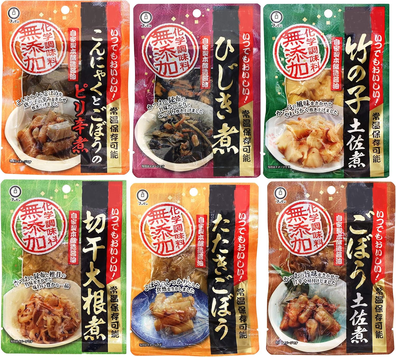 アウトレット特価!通常価格1,296円の商品。日持ちのするお惣菜の小袋。食べ切りサイズです。箸休め、一品小鉢やお弁当に最適です。食卓を彩るとても便利なお惣菜です。無添加惣菜シリーズ。常温で保存できますので、防災備蓄用にも適します。たたきごぼう 80g ・切干大根80g・ひじき煮80g・蒟蒻とごぼうのピリ辛煮80g・竹の子土佐煮75g・ごぼう土佐煮65gのセット。Amazonプライム会員又は2,000円以上の注文で送料無料。それ以外は送料400円です。