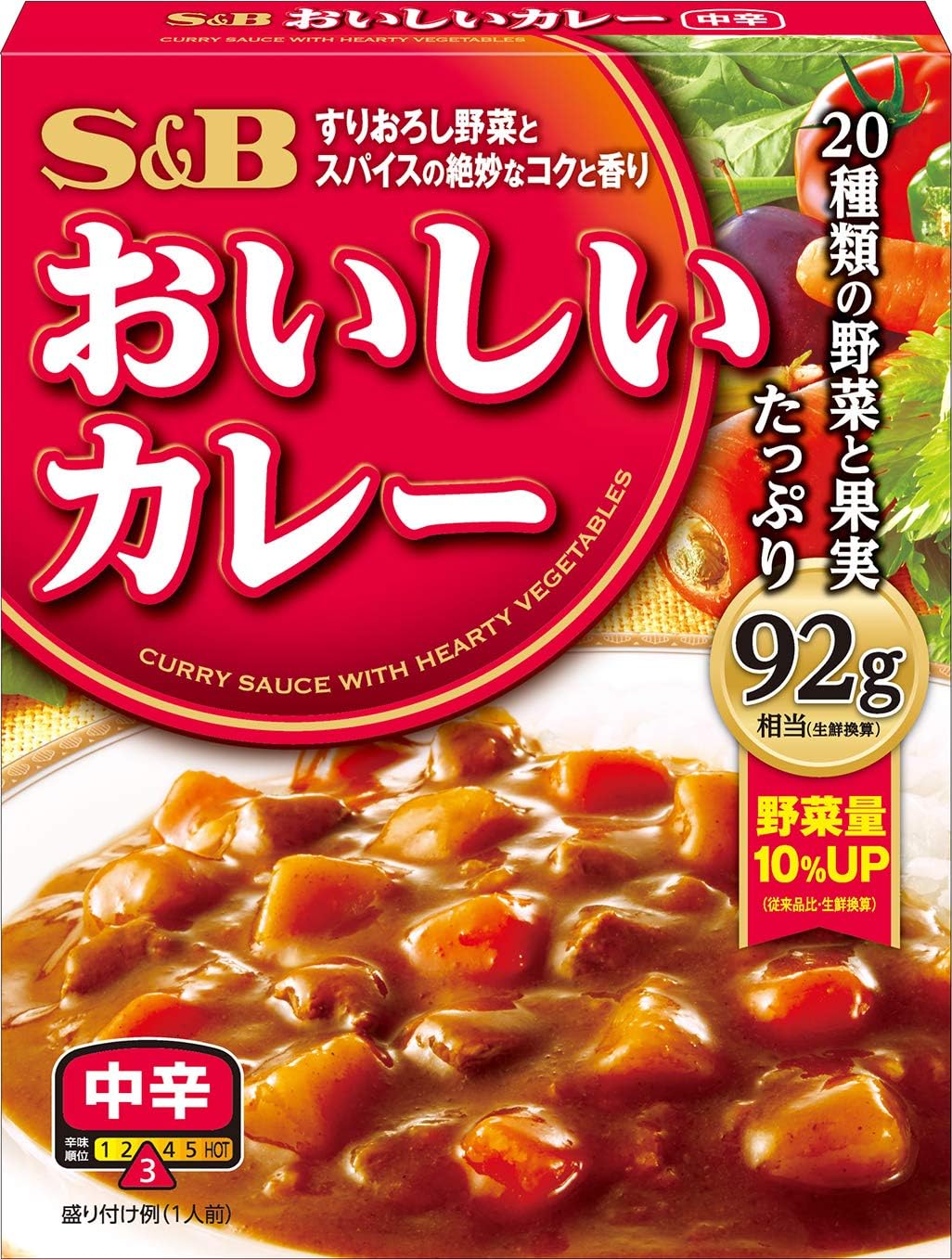 生鮮換算92gの、22種類の野菜と果実たっぷり。たっぷりの炒め玉ねぎとすりおろし野菜の深いコク。じっくり煮込んだ野菜の旨みと、30数種類のスパイス香るこだわりのビーフカレー。Amazonプライム会員又は2,000円以上の注文で送料無料。それ以外は送料400円です。