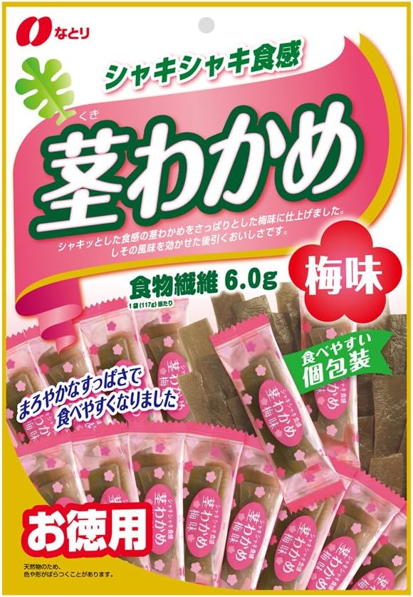 アウトレット特価!シャキッとした歯ごたえの茎わかめを、食べやすいサイズにカットして個包装。さっぱりとした梅味にしその風味。茎わかめとは中芯(なかしん)と呼ばれるわかめの茎の部分です。食物繊維が含まれており、コリコリとした食感が特徴です。Amazonプライム会員又は2,000円以上の注文で送料無料。それ以外は送料400円です。