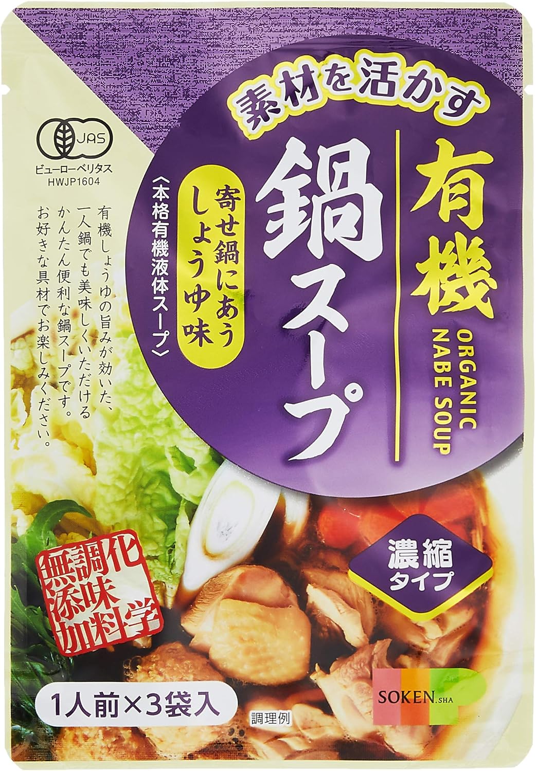 アウトレット特価!有機しょうゆの豊かな風味に、宗田節やチキン、有機にんにくなどの旨みを合わせた、有機JAS認定の本格液体鍋スープ(希釈タイプ)。お好きな具材でかんたん調理。一人鍋でも楽しめます。化学調味料無添加。Amazonプライム会員又は2,000円以上の注文で送料無料。それ以外は送料400円です。