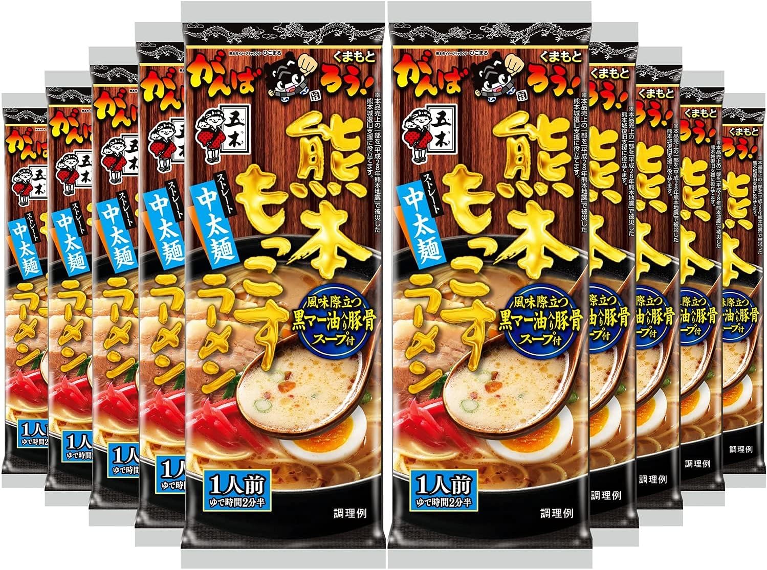 賞味期限間近、セット組詰め直し、外装不良(箱潰れ・開梱跡・シール跡など)があるのため訳あり特価。賞味期限は2021/7/19までです。麺は熊本ラーメンの特徴であるストレート中太の豚骨スープとよく絡む適度な歯応えと滑らかな麺です。豚骨をじっくり炊き出した白湯エキスに香味野菜で旨味をつけました。焦がしニンニク風味の黒マー油を配合した、濃厚なコクと旨味が特徴のスープです。お鍋一つでインスタントラーメンより手軽に本格的なラーメンが調理出来ます。