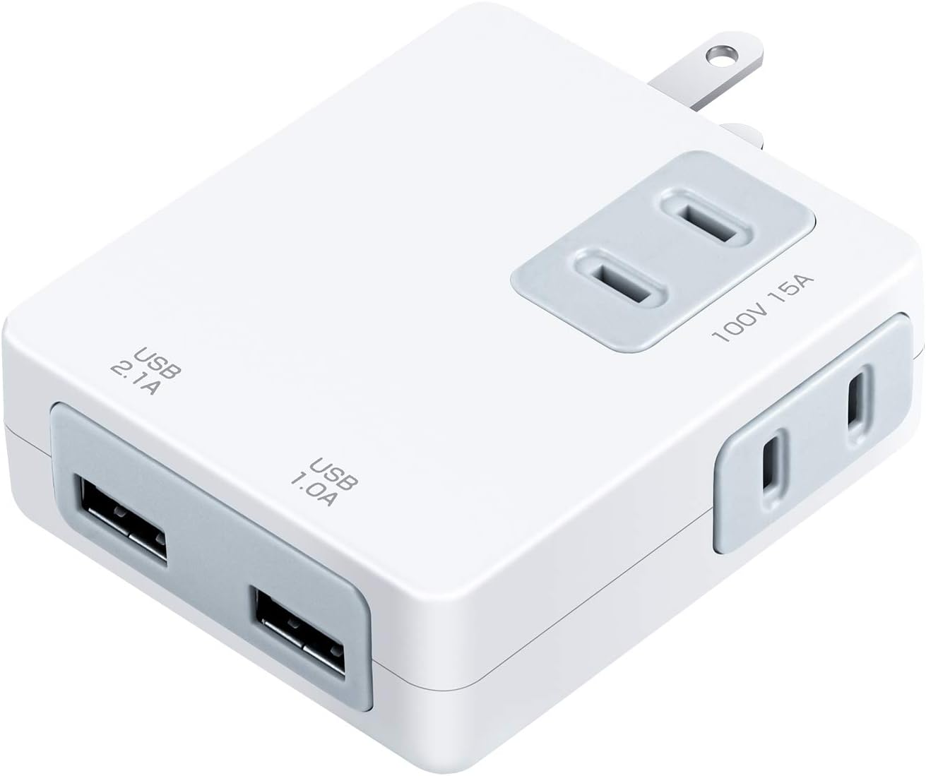 同時充電ができる2極タイプACコンセント2個口、iPad、iPhone、iPod、各社タブレット、スマートフォンに対応のUSB充電が2ポートの電源タップ。プラグ同士が邪魔にならないように、ACコンセントが違う方向に搭載されており、大きな充電器を差しても隣の差込口に干渉しません。Amazonプライム会員又は2,000円以上の注文で送料無料。それ以外は送料400円です。
