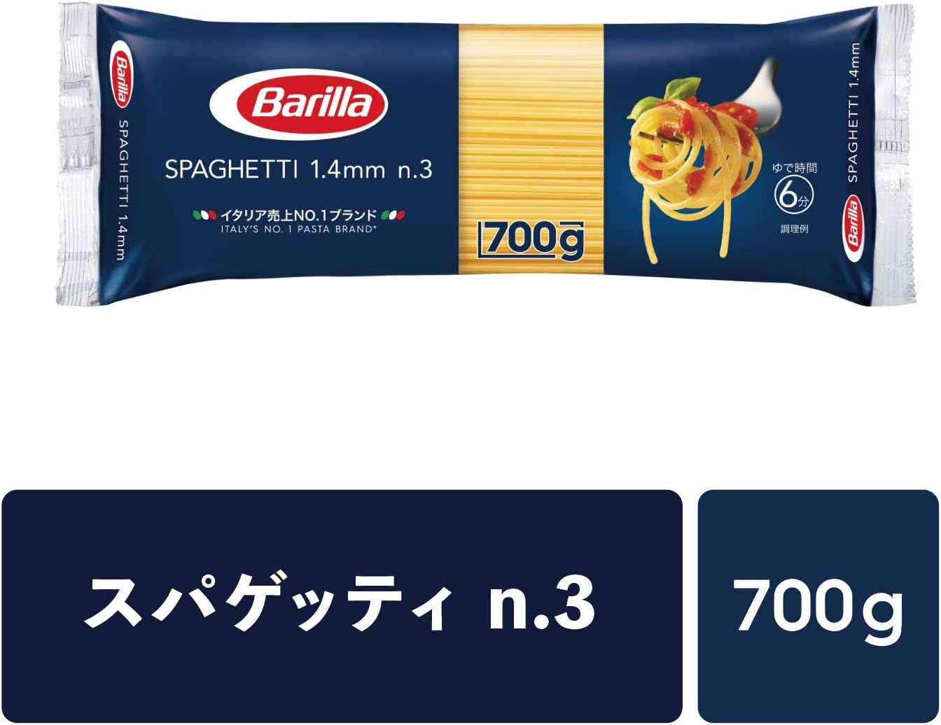 Amazonプライムデーセール!Barilla(バリラ)は本場イタリアだけでなく、ヨーロッパ各地やアメリカで最も支持されているパスタブランド。バリラパスタはアルデンテの食感が長く続きます。徹底された品質管理と独自の乾燥方法、つるつるとした表面を作り出すテフロンダイス製法により、安定したブレの無い品質を実現し、どなたでも失敗無く本格的なアルデンテパスタを楽しめます。No.3はやや細麺タイプのスパゲッティ。オイル系のソースとよく合います。Amazonプライム会員又は2,000円以上の注文で送料無料。それ以外は送料400円です。
