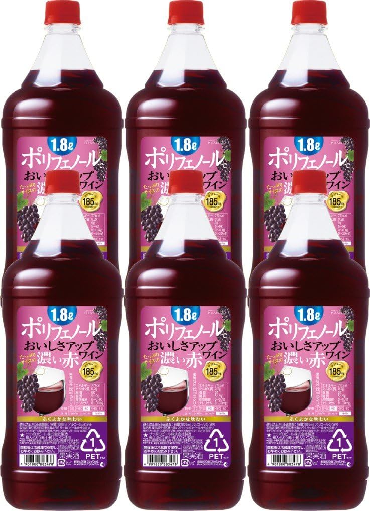 • 【Amazonプライムデーセール】【3,798円】 サッポロ ポリフェノールでおいしさアップ たっぷりサイズの濃い赤ワイン 1800ml 6本 【送料無料】