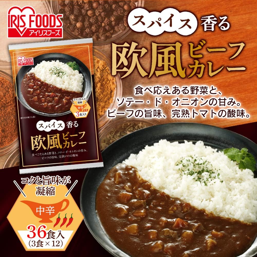 • 【3,072円】 アイリスオーヤマ スパイス香る欧風ビーフカレー 中辛 カレー レトルト 36個 【送料無料】