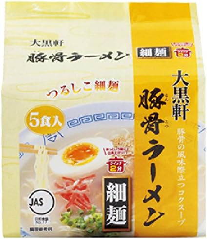 アウトレット特価!ストレートノンフライの細麺に、液体と粉末(ねぎ・ごまのかやく入り)のWスープで濃厚ながらすっきりした本格派豚骨ラーメン。薬味には豚骨ラーメンでは定番の紅生姜を添付。別ゆで不要の煮込み方式の調理方法ですので、お鍋ひとつで手軽に簡単、短時間で本格的な豚骨ラーメンができます。麺は乾麺タイプですので長期・常温保存商品。ローリングストックや備蓄、常備食品としても最適。Amazonプライム会員又は2,000円以上の注文で送料無料。それ以外は送料400円です。