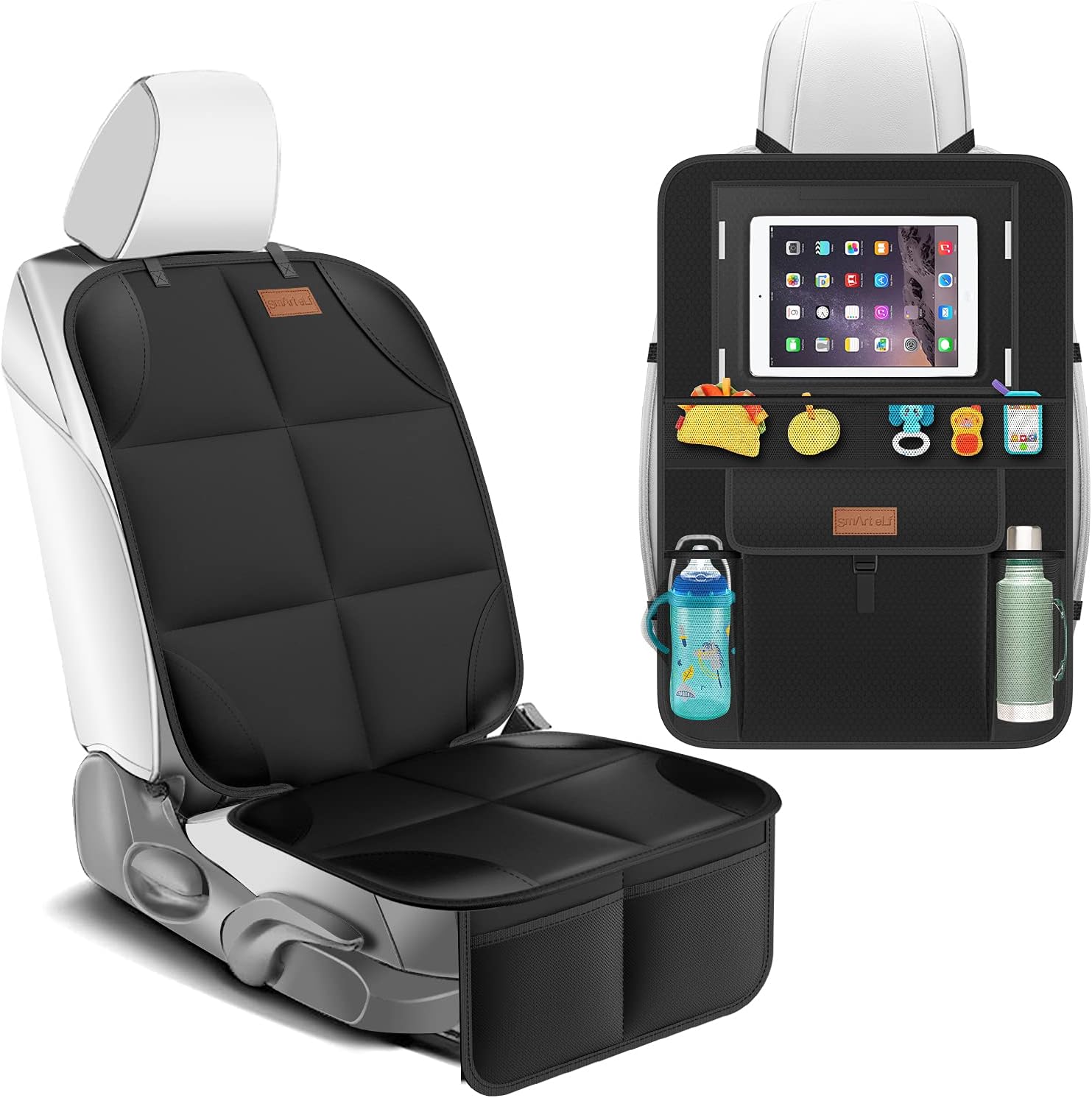クーポンコード:YUVFCB36で表記価格になります。チャイルドシート設置による座席の擦れ、キズ、凹みの防止、ペットや道具を座席シートに乗せる際の汚れからも保護するシートプロテクター。このシートプロテクターは、ブラックカラーでチャイルドシートと車のスタイルを問わず、ISOFIX対応で全ての車に合います。シートクッション生地は、上質なポリエステル繊維を使用し、織りの風合いがクリアで光沢も良好です。耐久性・耐摩耗性は、一般素材の3倍です。表面に防水コーティング 底面に両面防水です。チャイルドシート保護マットのボトムに収納ポケットが付き、キックガードも収納性があります。ベビー用品、飲み物、ボトル、携帯電話、紙またはその他の必需品が収納出来ます。エプロンのように垂れ下がるので、元気な子が靴で座席を汚してしまうのも、防止できます。保護マットのみの2点セットもあります。(クーポンコード:E38N7SSH)
