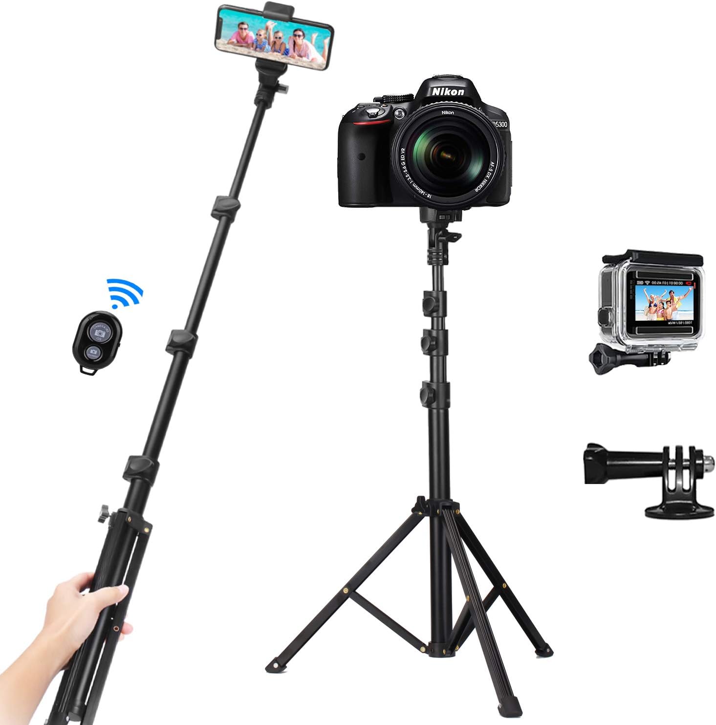クーポンコード:B6YLQSABで表記価格になります。良質なアルミ合金、ABS材を採用し、安定性と強度兼備。45.9cmから134.6cmまで調整でき、お好みに合わせて高さを自由に調整できます。幅5.6cm~8.6cmまでのスマホに対応可能。360×180度回転可能。1/4カメラマウントホルダーとマウントボルトに対応し、GoPro/小型カメラにも装着できます。Bluetoothリモコン付き。12ヶ月保証。