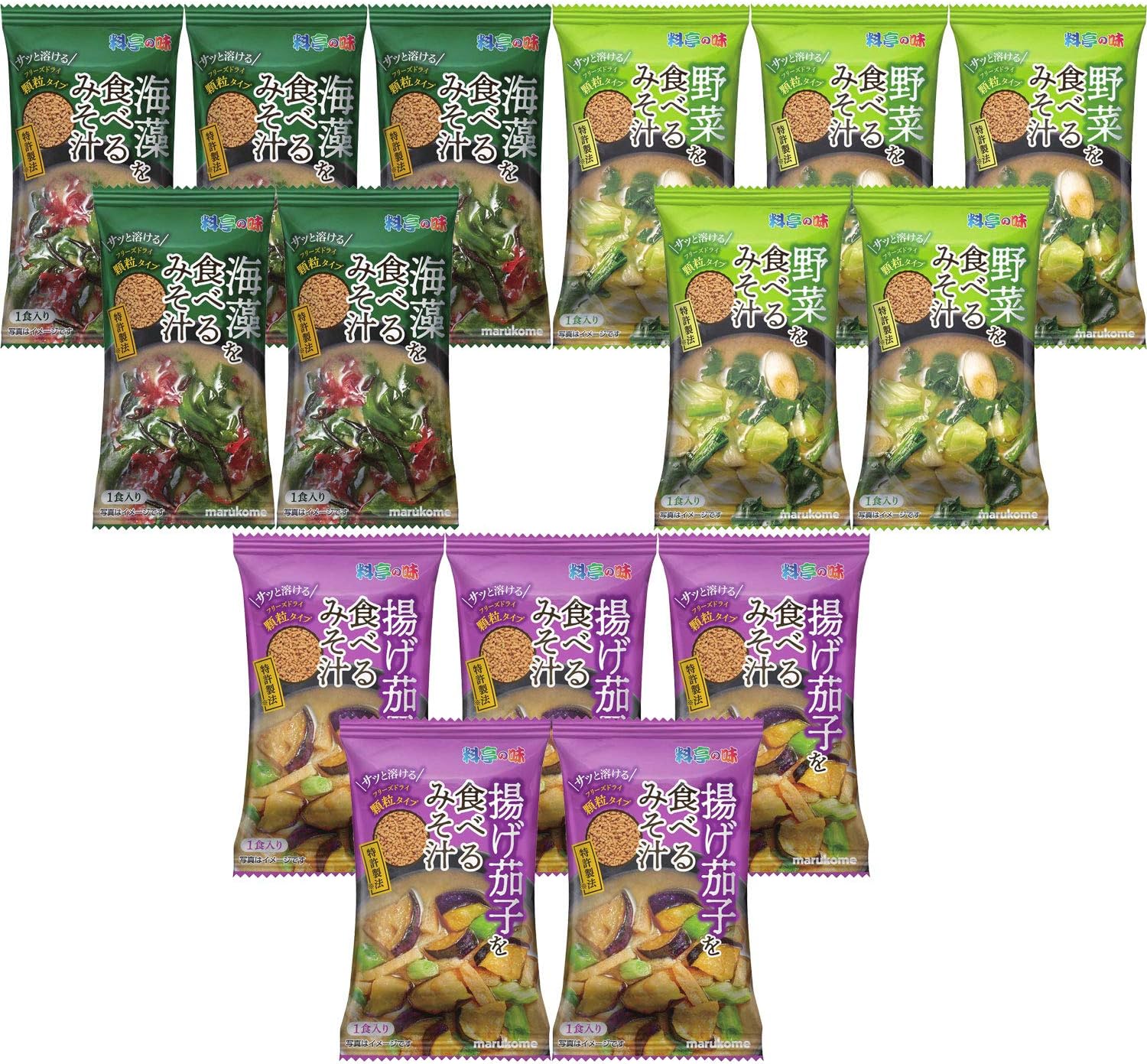 タイムセール特価!1個あたり約60円。特許製法の顆粒みそ小袋タイプ。こだわりの味わいと香りはそのままに、具材をたっぷり合わせ、手軽で食べ応えのある味。海藻はわかめ、赤つのまた、ひじき。野菜はキャベツ、長ねぎ、ほうれん草。揚げ茄子は揚げ茄子、油揚げ、長ねぎ。持ち運びしやすくゴミも少ないので、家庭での使用やオフィスでのランチタイムはもちろん、キャンプやバーベキューなどアウトドアや旅行のお供にも適しています。Amazonプライム会員又は2,000円以上の注文で送料無料。それ以外は送料400円です。