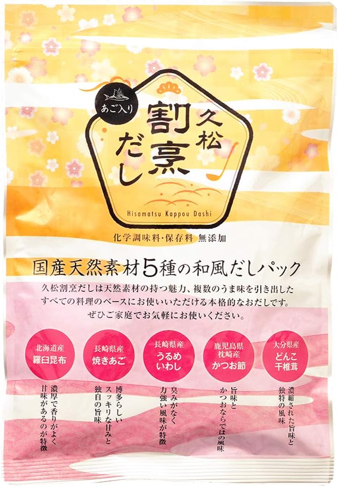 商品ページ内のクーポンで表記価格になります。国産天然素材5種(うるめいわし煮干、かつお節、飛魚煮干、昆布、椎茸)の和風だしパック。すべての料理のベースに使える本格的なだし。クーポンが消えている場合は終了していますのでご了承ください。