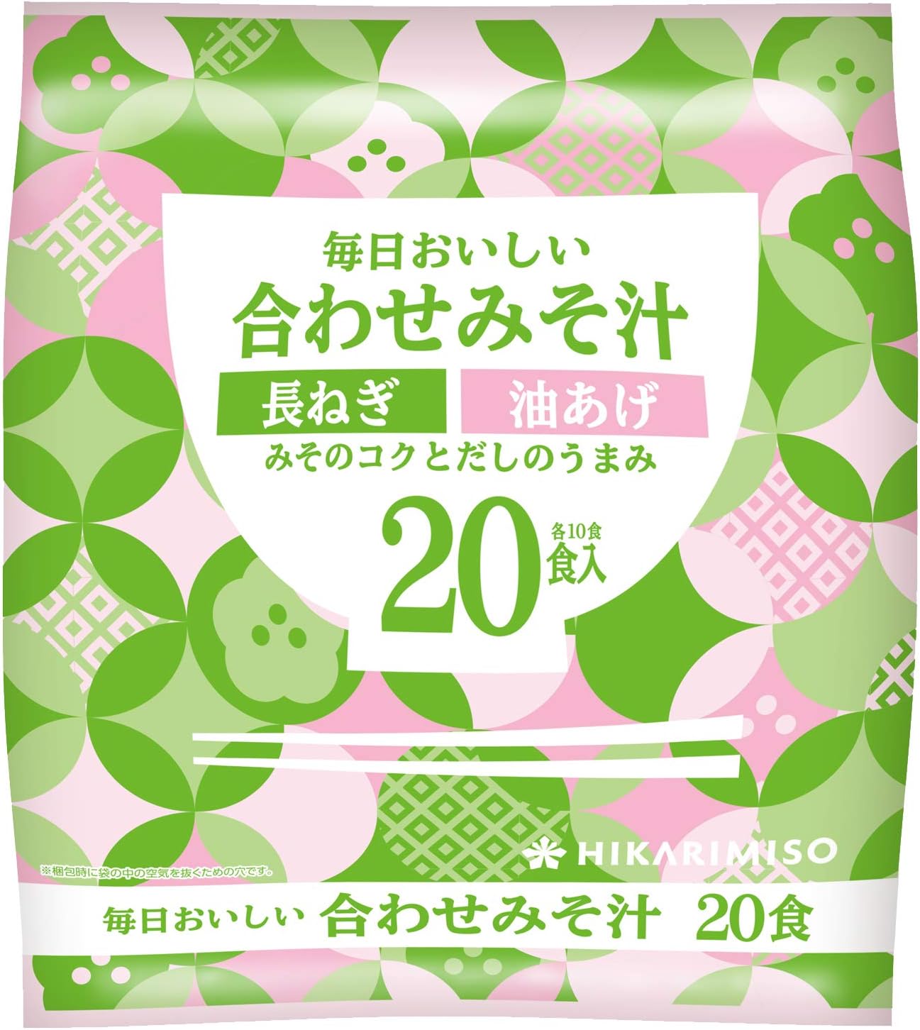 アウトレット特価!お湯を注ぐだけで、おいしいみそ汁が楽しめます。徳用20食の大袋タイプ。みそは、赤だしを使用しています。20食入り即席みそ汁を飽きないように3種類の具材(わかめ、長ねぎ、とうふ)でアソート化。Amazonプライム会員又は2,000円以上の注文で送料無料。それ以外は送料400円です。