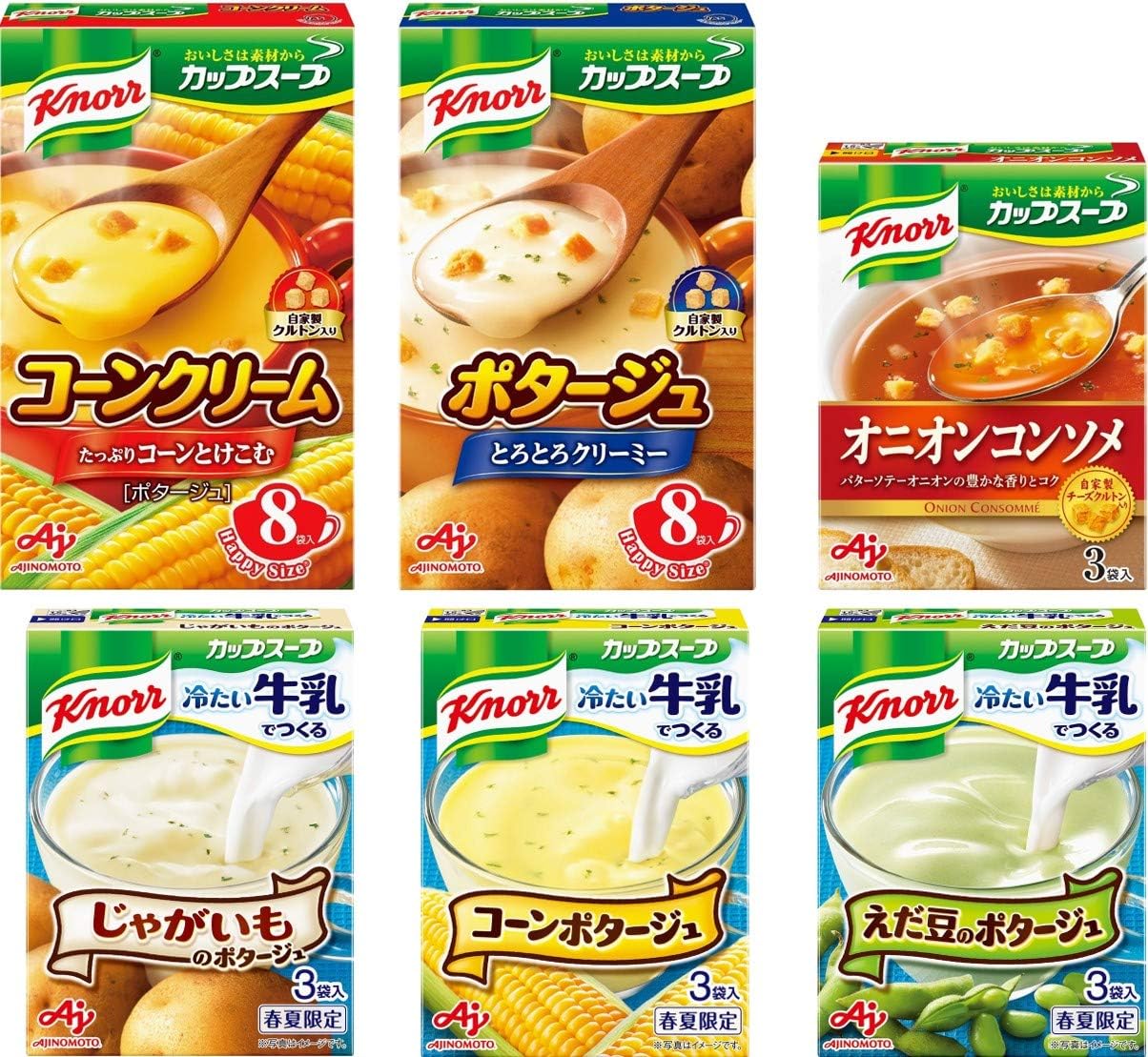 アウトレット特価!コーンクリーム8袋・ポタージュ8袋・オニオンコンソメ3袋・冷たい牛乳コーン3袋・冷たい牛乳じゃがいも3袋・冷たい牛乳えだ豆3袋のセット。種類が豊富なのでその日の気分で色んなスープを楽しめます。Amazonプライム会員又は2,000円以上の注文で送料無料。それ以外は送料400円です。