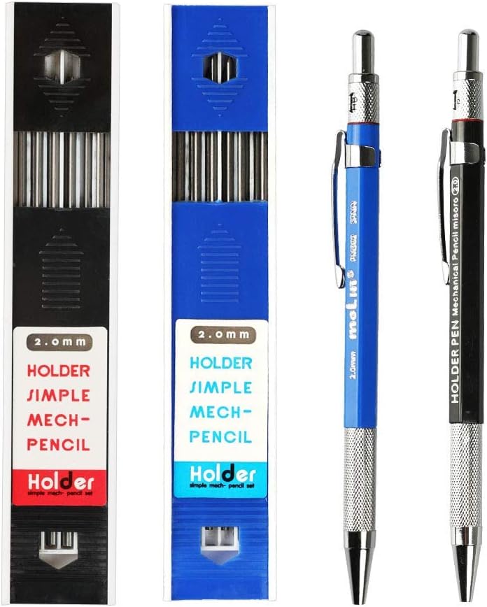 クーポンコード:37NXCNZ8で表記価格になります。2mm 2Bシャープペンシル2本 (ブルー1本、ブラック1本) と替え芯2本 (ブルー1個、ブラック1個) のセット。替え芯の直径は2mmです。鉛筆のキャップの内側にはシャープナーがあり、キャップで簡単に芯を削ることができます。作図/カーペンター/工芸/アートスケッチなどに。Amazonプライム会員又は2,000円以上の注文で送料無料。それ以外は送料400円です。
