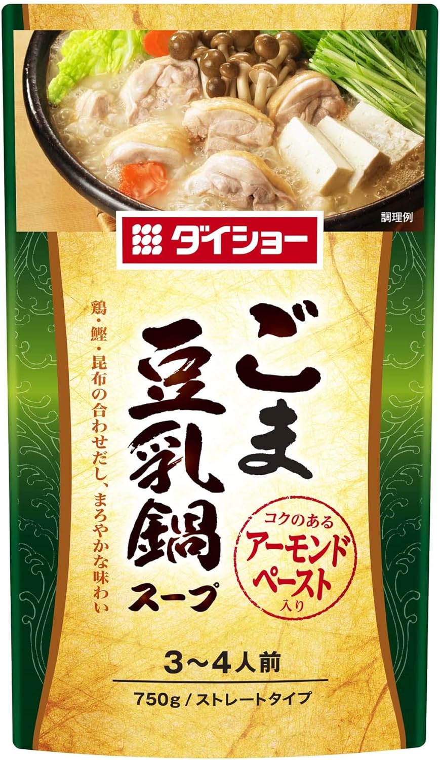 商品ページ内のクーポンで表記価格になります。鶏・鰹・昆布の合わせだしに、ねりごまとアーモンドペーストのコクを効かせ、豆乳の風味でまろやかに仕上げた鍋スープです。肉・野菜等のお好みの材料を加えて煮るだけで本格鍋が楽しめます。クーポンが消えている場合は終了していますのでご了承ください。Amazonプライム会員又は2,000円以上の注文で送料無料。それ以外は送料400円です。
