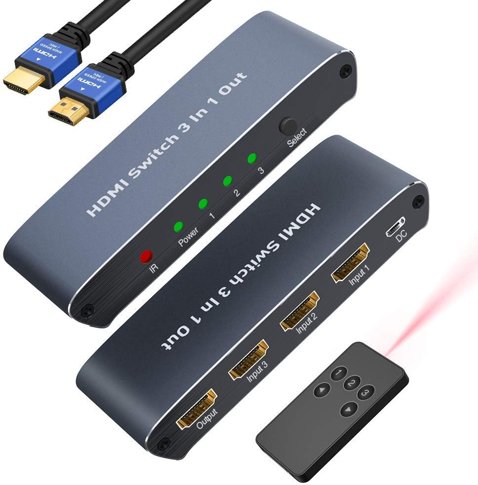 タイムセール特価!アルミニウム合金シェルで放熱が速く、遅延のない高速伝送。3D、1080P、4K x 2Kの解像度とHDオーディオ対応。HDMI2.0ケーブル1本付き。リモコンで切替可能。3入力1出力。Amazonプライム会員又は2,000円以上の注文で送料無料。それ以外は送料400円です。