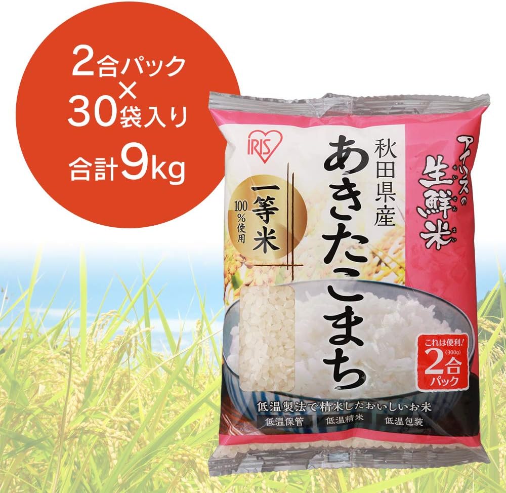 あきたこまちはコシヒカリの血を受け継ぐ、モチモチとした粘りと食感、バランスの良い味わいが人気の品種。米殻検査で最も優秀な等級と認められた一等米だけを使用。お米の保管に適した15℃以下の低温工場で保管・精米・包装を行う独自製法でお米の鮮度とおいしさを保ちます。精米したてのお米を高気密パックに2合ずつ小分けにして脱酸素剤を封入。お米の酸化・劣化を防ぎます。冷蔵庫に保管する際も場所を取りません。