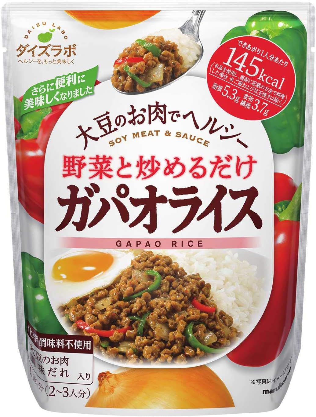 商品ページ内のクーポンで表記価格になります。お味噌の原料である「大豆」に注目したダイズラボシリーズから手軽に作れるガパオライス。お肉の代わりにレトルト加工された大豆ミート(ミンチタイプ)が入っており、野菜と炒めるだけで、簡単にヘルシーなガパオライスを楽しめる惣菜の素。バジル、唐辛子、魚醤など絶妙な風味の取り合わせを楽しめます。大豆のお肉と同量の豚挽き肉を使用して調理した場合と比較して、カロリーは32%カット、脂質は53%カット。食物繊維総量2.4倍。できあがり1人前あたり136Kcal。クーポンが消えている場合は終了していますのでご了承ください。Amazonプライム会員又は2,000円以上の注文で送料無料。それ以外は送料400円です。