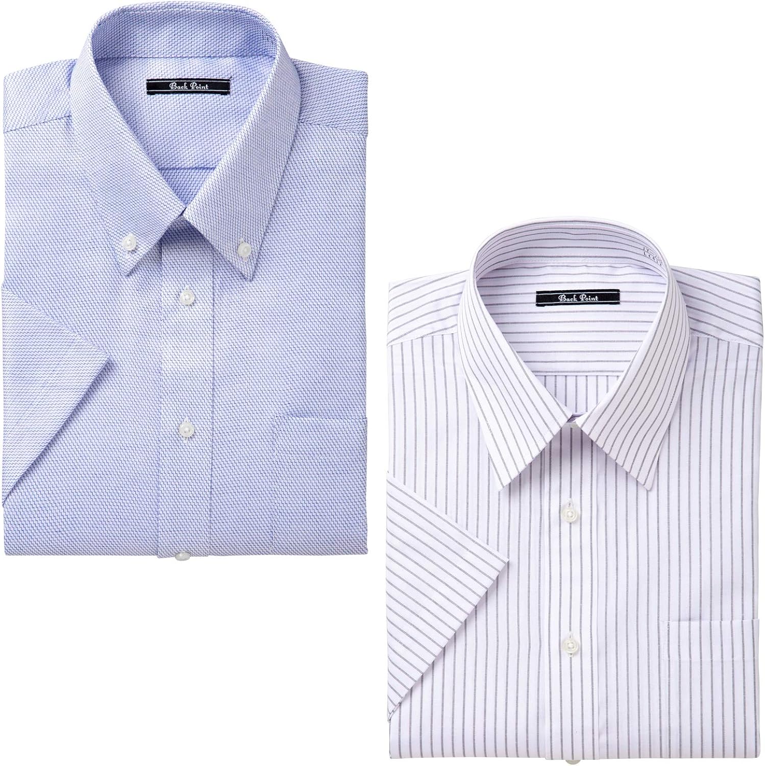 タイムセール特価!先染めの形態安定半袖ワイシャツ。背中タック入りの本格仕様。ポリエステル65%・綿35%。Amazonプライム会員又は2,000円以上の注文で送料無料。それ以外は送料400円です。