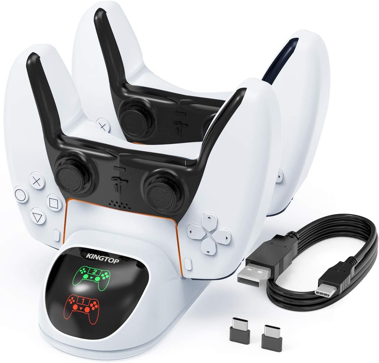 クーポンコード:28PURNT2で表記価格になります。プレイステーション5のワイヤレスコントローラー用充電スタンド。付属のUSB Type-Cケーブルを使用し、PS5本体やACアダプタのUSBポートからPS5用コントローラを最大2台同時に充電できるスタンド。約4時間で2つのコントローラーを満充電できます。日本語説明書付き。Amazonプライム会員又は2,000円以上の注文で送料無料。それ以外は送料400円です。