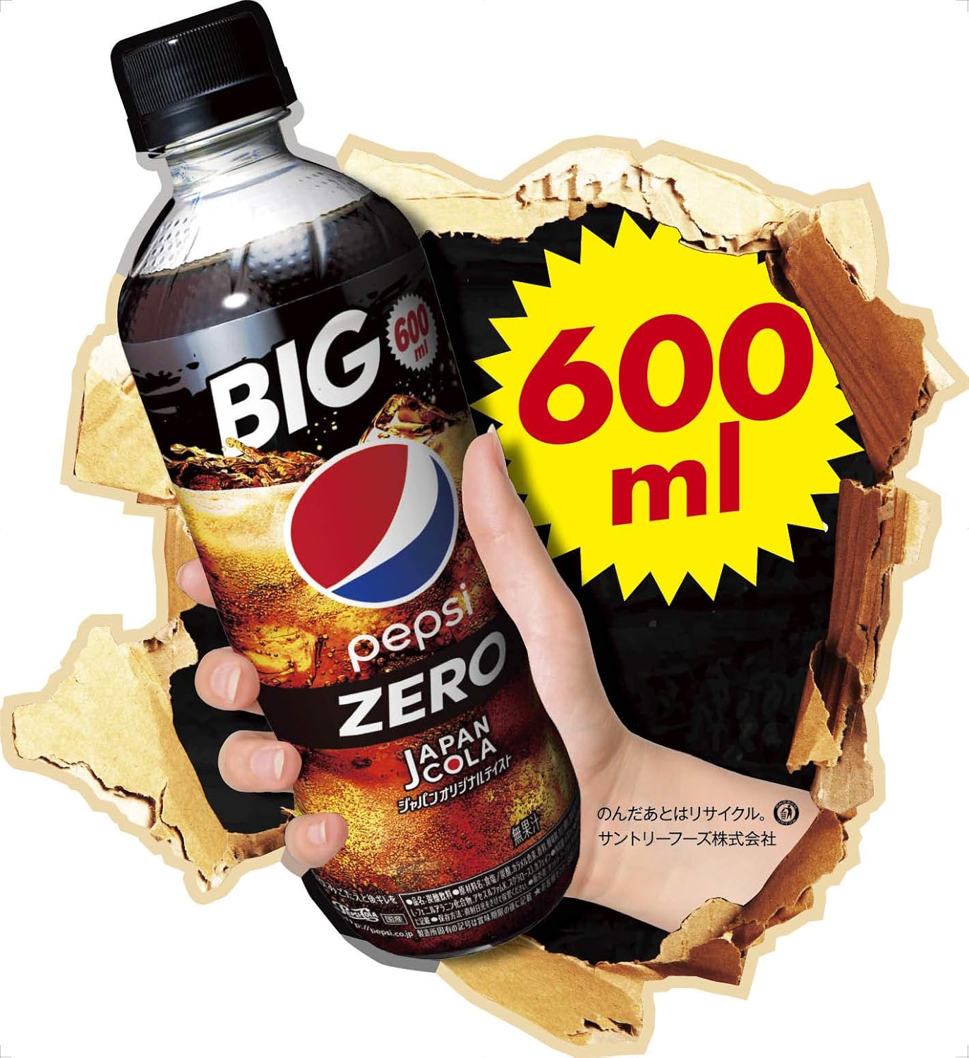 商品ページ内のクーポンで表記価格になります。1本あたり約71円。定期おトク便なら更に割引になります。定期おトク便はいつでも解除できます。抜群の“爽快感”を実現した、汗の後にうまい、日本オリジナルのペプシコーラゼロBIG600mlサイズ、ペプシ ジャパンコーラ 600ml。ペプシ史上最高レベルの”爽快感”を実現した有糖製品の知見を活かした香味設計。汗の後に”うまい”ジャパンオリジナルテイスト。米国ペプシコ社と日本のサントリーが知恵と技を結集し、磨き上げた、日本の”コーラ好き”が”うまい”と唸る味わい。隠し味の塩と和柑橘の爽やかな香りで、抜群の飲みごたえと後ギレを両立し、汗をかいた後に”うまい”、”爽快感”溢れるおいしさを実現。クーポンが消えている場合は終了していますのでご了承ください。