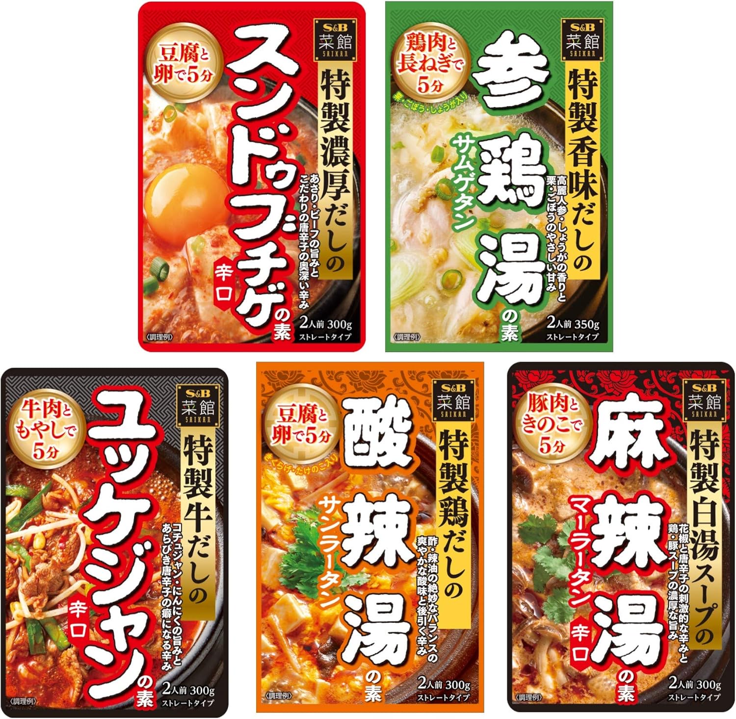 商品ページ内のクーポンで表記価格になります。定期おトク便なら更に割引になります。定期おトク便はいつでも解除できます。材料2~3品を加えて煮込むだけ。2人前鍋の素シリーズ。スンドゥブチゲは、あさりとビーフのだしに3種の唐辛子(辛口・焙煎・甘口)をバランスよく配合した濃厚な旨みと辛みが重なり合うやみつきになる味わい。参鶏湯は、鶏の旨み豊かなスープに、高麗人参、しょうが、栗、ごぼうを加えた風味豊かな香りと自然な甘みを感じるやさしい味わい。酸辣湯は、鶏がらだしに絶妙なバランスで配合した2種の酢、辣油とXO醤を加えた酸味豊かでピリッとした辛みの奥に感じる旨みが効いた味わい。ユッケジャンは、ビーフのだしに、コチュジャン、辣油、赤唐辛子をバランスよく配合したコク深い旨みと辛みが両立したやみつきになる味わい。麻辣湯は、鶏&豚白湯スープに、花椒・赤唐辛子・八角・シナモンを加えた芳醇な香りと刺激的な辛みが調和した癖になる味わい。クーポンが消えている場合は終了していますのでご了承ください。Amazonプライム会員又は2,000円以上の注文で送料無料。それ以外は送料400円です。