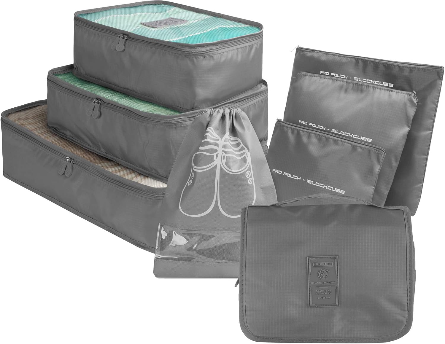 在庫処分セール!大きさの異なるポーチが8点で衣類や小物ごとに分けてスッキリ収納。高品質の防水性を備えたカチオン生地にて作られて、耐引掻き性、耐引裂性に優れています。 メッシュ地のトップが通気性と視認性を確保。 汚れた衣類を入れるコンパートメントの内側は防水素材の為、濡れた衣類も収納することができます。Amazonプライム会員又は2,000円以上の注文で送料無料。それ以外は送料400円です。