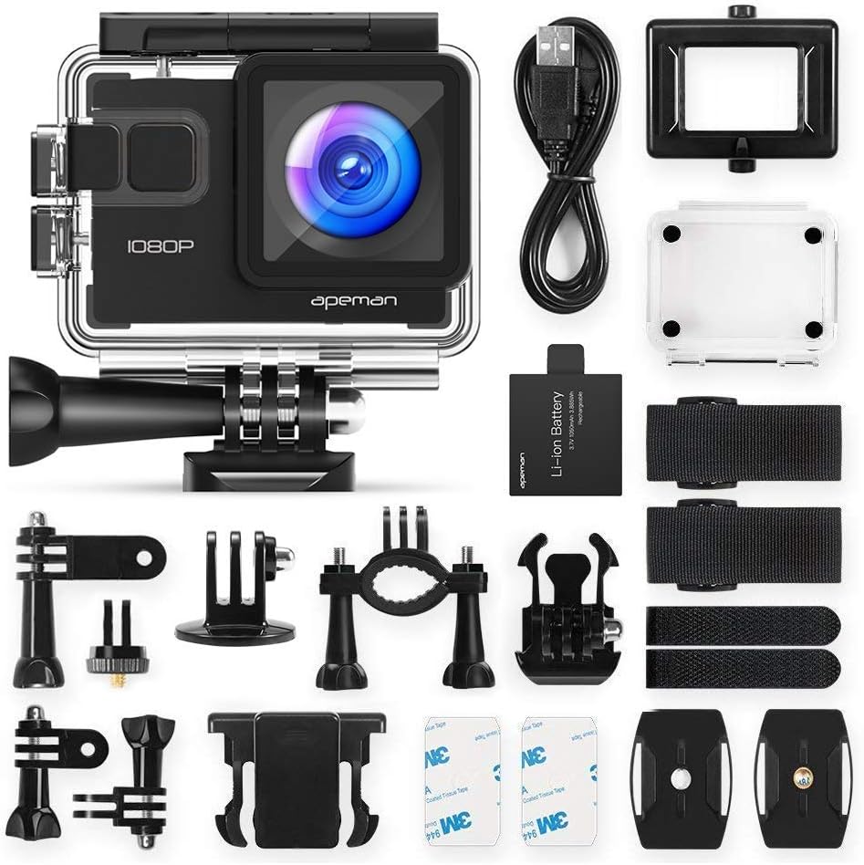 タイムセール特価!1080PフルHD高画質。40メートル防水。2インチ表示画面。170度撮影角度。内蔵Wi-Fi。多機能撮影モード。ドライブレコーダー機能。13ヶ月メーカー保証。