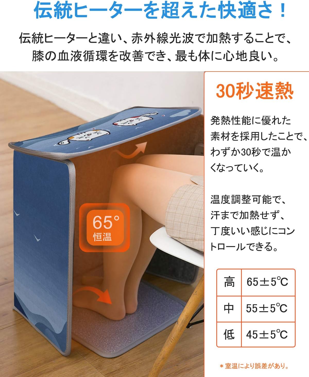 クーポンコード:MY3JVJBJで表記価格になります。こちらを購入するとなぜかベッド用タブレットスタンドがもらえるようです。両方カートに入れてください。電気代は1時間あたりなんと約3.8円のローコスト経済的電気ヒーター。コタツと同じくらいぽかぽかとのこと。36ヶ月間品質保証。