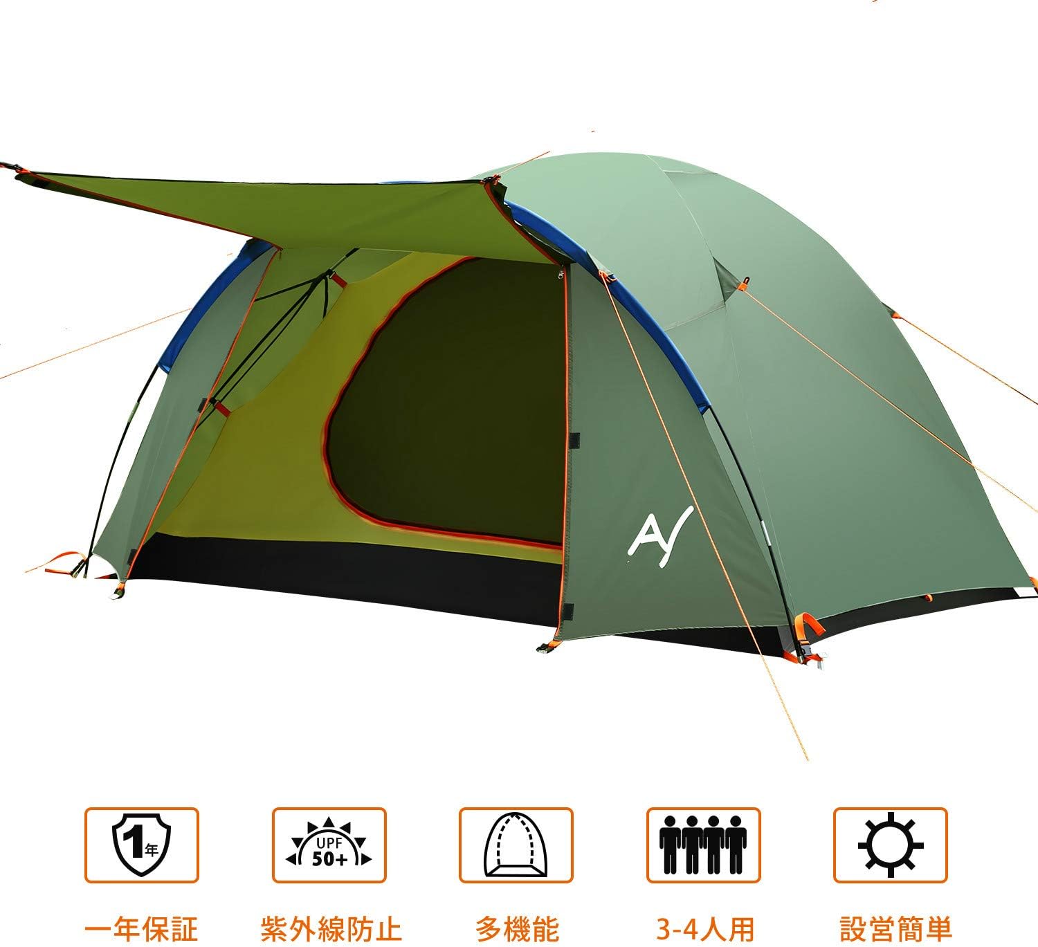 Amazonタイムセール特価!大人が3-4人寝べる広々の快適空間。シルバーコート加工でUV(紫外線)測定遮蔽率94%以上、耐水度試験では耐水1500mm以上。D型の入り口+フレーム入りのベンチレーションで、テント内の換気を効率よく行います。
