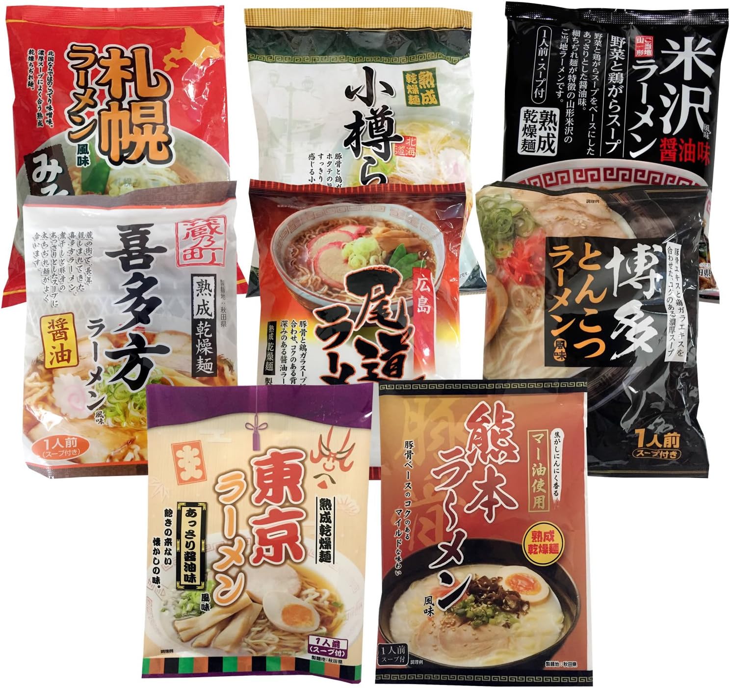 商品ページ内のクーポンで表記価格になります。札幌ラーメン味噌味、 小樽ラーメン塩味、 米沢ラーメン醤油味、 喜多方ラーメン醤油味、 尾道ラーメン醤油味、 博多ラーメンとんこつ味のセット。熊本ラーメンなどの別セットもあります。Amazonプライム会員又は2,000円以上の注文で送料無料。それ以外は送料400円です。