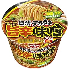 Amazonプライム感謝祭特価!1個あたり116円。赤と白、Wの味噌のコクがうまさの決め手!の旨辛味噌ラーメン。麺はスープ絡みの良さと噛み応えを追求した中太ちぢれ麺。大盛り麺90gで食べ応え抜群。Amazonプライム会員又は3,500円以上の注文で送料無料。Amazonプライム会員ではない方で3,500円に満たない場合は、本州・四国は送料460円、北海道・九州・沖縄・離島は送料500円です。