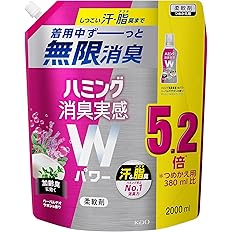 Amazonプライム感謝祭特価!定期おトク便なら更に割引になります。定期おトク便はいつでも解除できます。しつこい汗・脂臭まで着用中ずーっと無限消臭。手ごわいニオイを消臭し続けます。汗・脂臭にハミング史上No.1消臭力。ハーバルデオサボンの香り。W消臭成分最大配合。スポーツ汗臭・じんわりワキ臭・皮脂臭・枕やエリそで加齢臭に効きます。脂の付着をブロック。部屋干し臭にも強い。花粉ブロック。抗菌。Amazonプライム会員又は3,500円以上の注文で送料無料。Amazonプライム会員ではない方で3,500円に満たない場合は、本州・四国は送料460円、北海道・九州・沖縄・離島は送料500円です。
