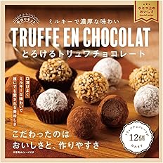 47%OFF!手作りの常識を超えた、ひとつ上のおいしさ。みんな大好きで、本格的なトリュフチョコレートが家庭で簡単に作れます。トリュフのために選び抜いたミルクチョコレートを使用。口溶けがよくミルキーな味わいは誰にでも愛される美味しさです。 3種類のトッピングが楽しめます。Amazonプライム会員又は3,500円以上の注文で送料無料。Amazonプライム会員ではない方で3,500円に満たない場合は、本州・四国は送料460円、北海道・九州・沖縄・離島は送料500円です。