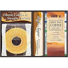 アウトレット特価!ミルクバウムクーヘン・ドトールドリップコーヒー(キリマンジャロブレンド7g)×各1、ドトールドリップコーヒー(深煎りブレンド7g)×2、スティックシュガー3g×5のセット。Amazonアウトレットは、倉庫内で梱包に傷を負った商品・返品された商品のうち、商品の状態が良いにも関わらず、基準では新品として販売しないものをアウトレット品という扱いで、お手頃な価格で販売しています。また、倉庫内で保管され、賞味期限が近づいた食品をお手頃な価格で販売しています。Amazonプライム会員又は3,500円以上の注文で送料無料。Amazonプライム会員ではない方で3,500円に満たない場合は、本州・四国は送料460円、北海道・九州・沖縄・離島は送料500円です。
