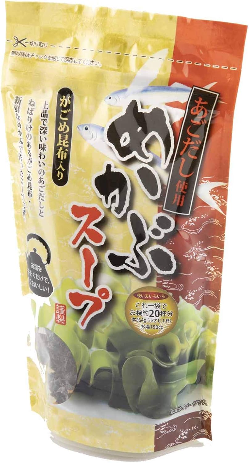 アウトレット特価!前回掲載時より値下がりしました。1個あたり230円。1袋でお椀約20杯分です。上品で深い味わいのあごだしとねばりけのあるがごめ昆布、新鮮なめかぶで作ったスープの素です。袋はチャック付きで保存も安心。小さじ1杯(4g)を器に入れて熱湯150CCを注ぎ、軽くかき混ぜて出来上がります。ぞうすいにも最適です。Amazonアウトレットは、倉庫内で梱包に傷を負った商品・返品された商品のうち、商品の状態が良いにも関わらず、基準では新品として販売しないものをアウトレット品という扱いで、お手頃な価格で販売しています。また、倉庫内で保管され、賞味期限が近づいた食品をお手頃な価格で販売しています。Amazonプライム会員又は3,500円以上の注文で送料無料。Amazonプライム会員ではない方で3,500円に満たない場合は、本州・四国は送料460円、北海道・九州・沖縄・離島は送料500円です。